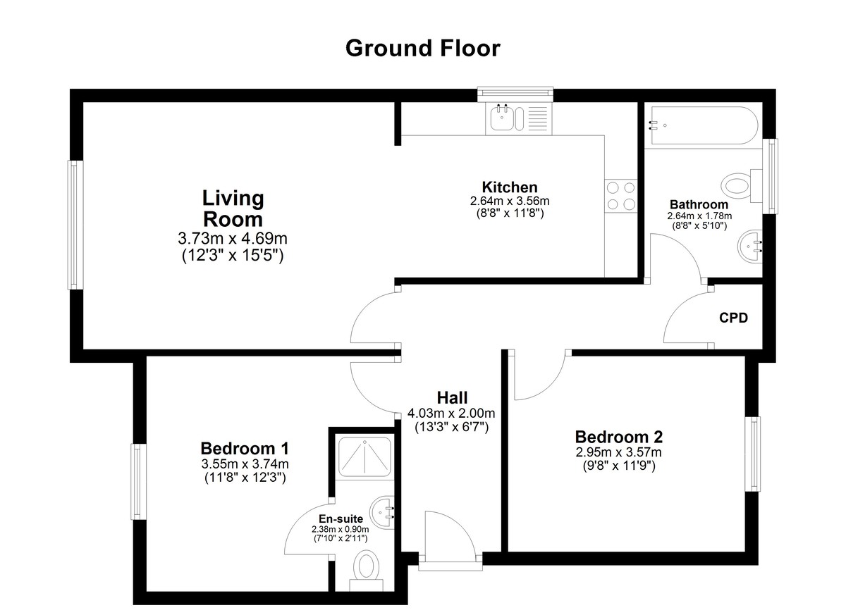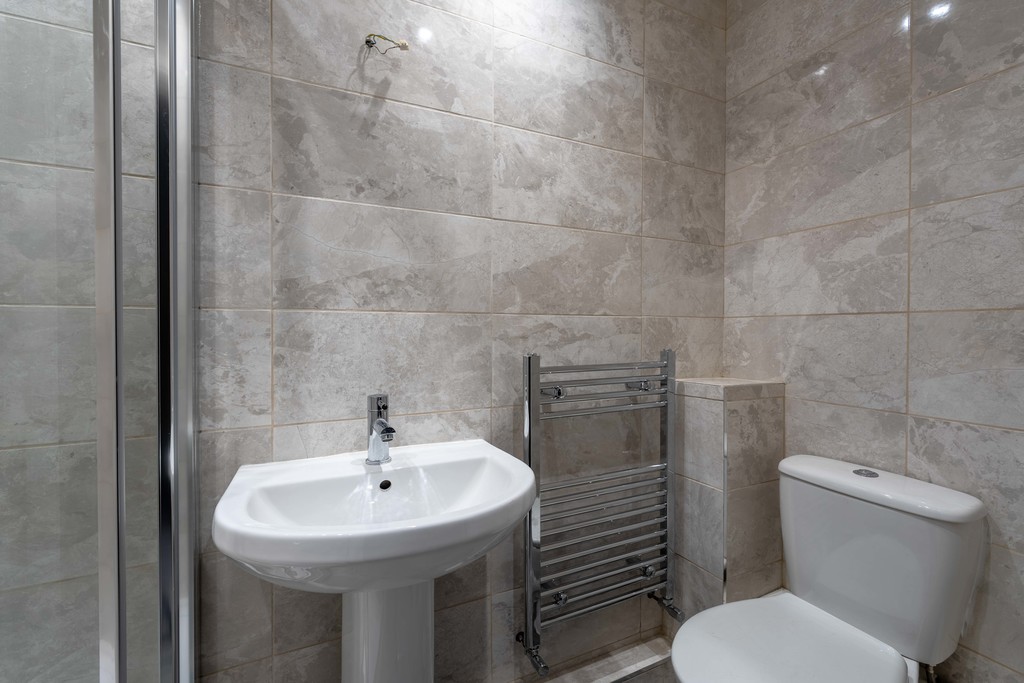 The accommodation comprises a spacious living room with open plan kitchen, two well proportioned bedrooms, with the principal bedroom benefitting from a modern en suite, and a stylish family bathroom. Off the hallway is a useful storage cupboard housing a recently installed gas combi boiler.