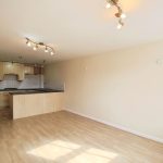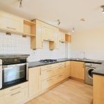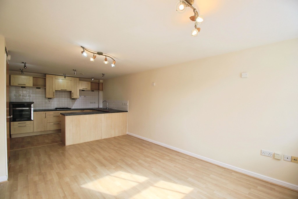 Upon entering the property, you are welcomed by a small entrance porch with a useful storage cupboard, leading through to the main hallway. To the left, the apartment opens into a bright open-plan kitchen and dining area, fitted with a range of appliances including a fridge/freezer, washing machine, cooker and hob, along with an additional storage cupboard.