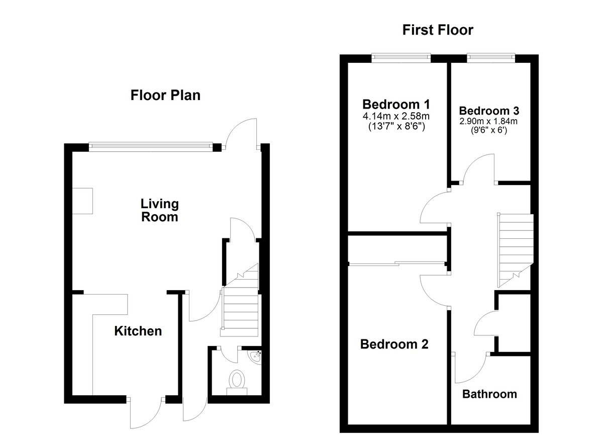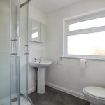 Upstairs, the property comprises three well-proportioned bedrooms, including two doubles and one single. The master bedroom benefits from built-in wardrobes, offering excellent storage solutions. A spacious family bathroom is also located on the first floor, fitted with a shower, WC, and sink.