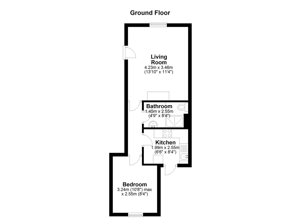 • One double bedroom ground floor aparment