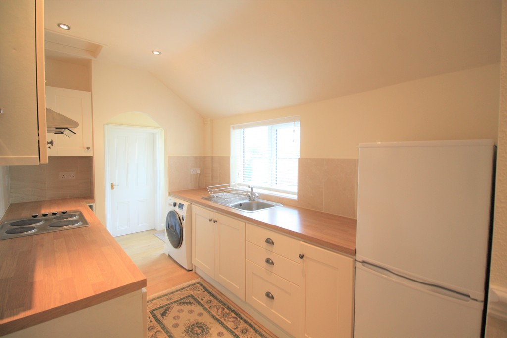 The accommodation consists of a good size hallway leading to the dining/living area with an electric fire. The kitchen is beautifully presented with oven, hob and fridge/freezer and washing machine. To the rear is a newly fitted three piece bathroom suite with a P-shaped bath.