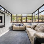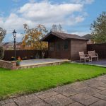 The exterior of the property is equally impressive. A large driveway provides ample parking for multiple vehicles, while the tree-lined front aspect offers excellent privacy and effective sound insulation from the road. The grounds also include an outdoor sunroom and two garages, providing additional flexibility and storage.