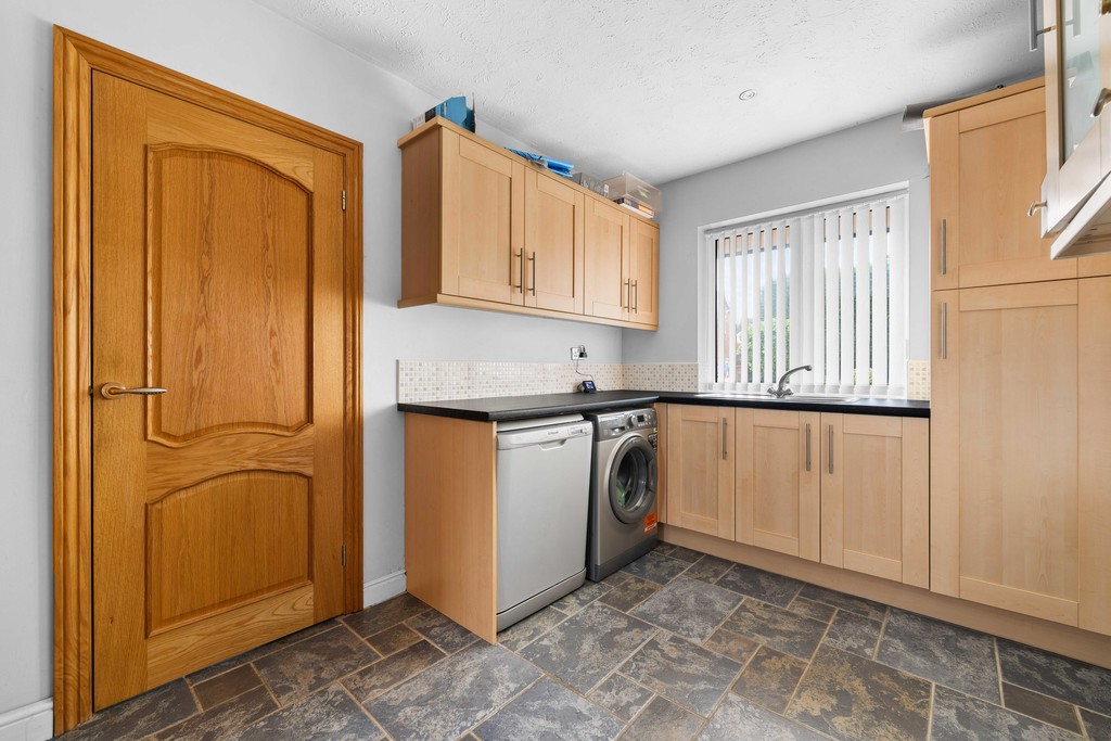 Upstairs, there are four generous bedrooms, with the main bedroom featuring fitted wardrobes and a stylish ensuite. The family bathroom is well presented and finished to a high standard.