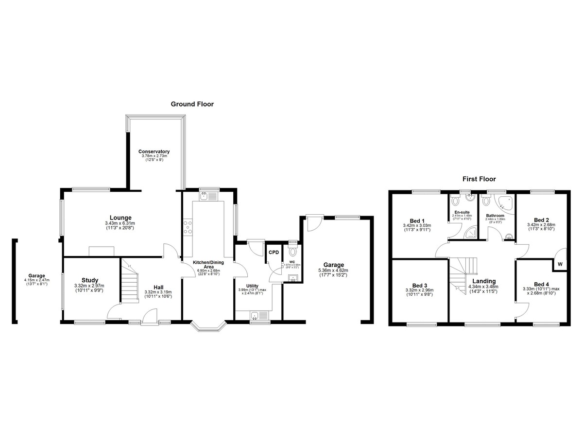 On entering, you are greeted by a full-height hallway with a gallery landing that sets the tone for the space and light found throughout the property. The ground floor offers a generous lounge, a separate study, a well-appointed kitchen/dining room with adjoining utility room, a convenient WC, and a stunning conservatory. The conservatory has been upgraded with an insulated roof, making it an inviting space to enjoy all year round. From here, you can take in lovely views over the private rear garden and open fields beyond.