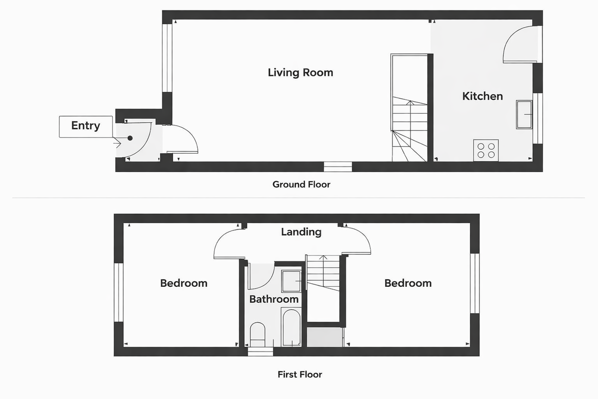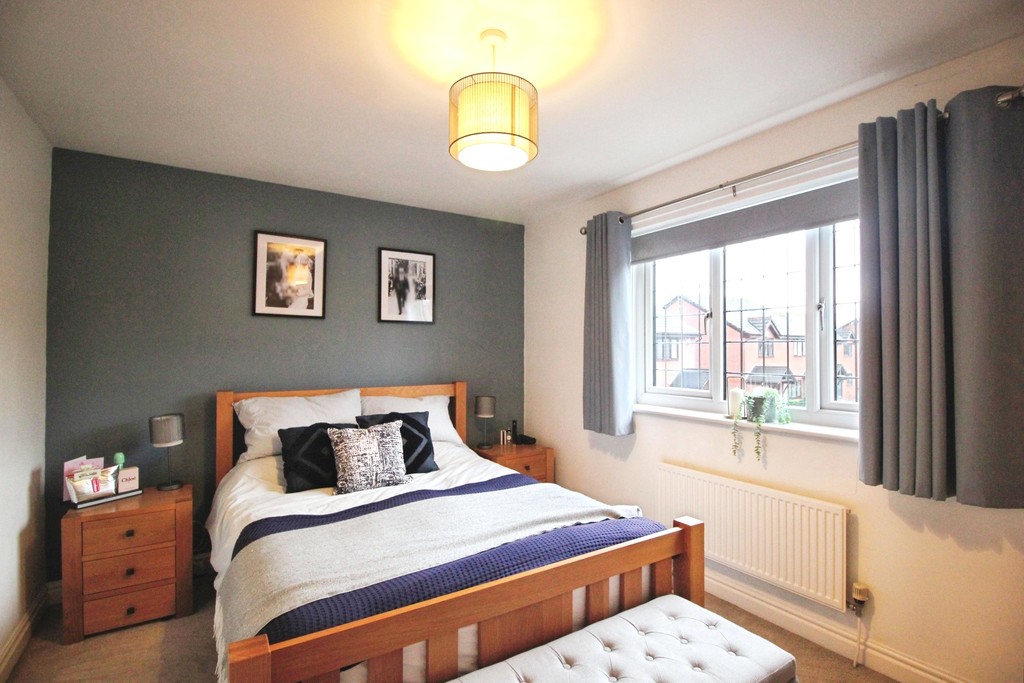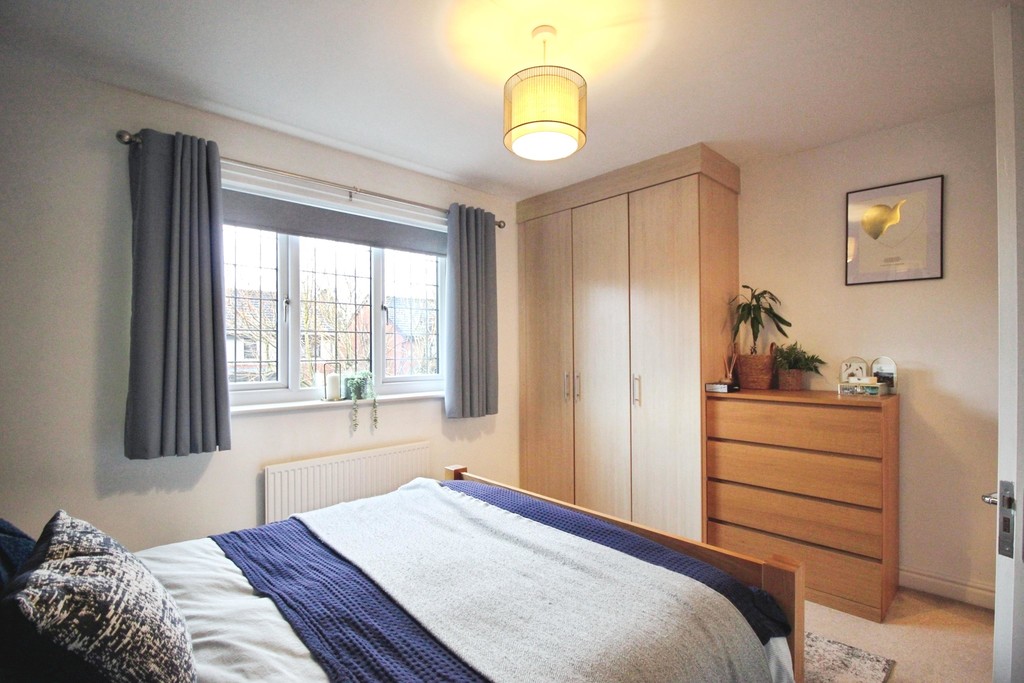 Upstairs, the accommodation continues to impress with two spacious double bedrooms offering excellent storage. The second bedroom features fitted wardrobes and an additional storage cupboard, ideal for use as an airing cupboard, while the generous master bedroom also benefits from fitted wardrobes, creating a calm and comfortable retreat. Completing the home is a beautifully finished, modern bathroom, presented to a high specification and comprising a shower over bath, WC and wash hand basin.