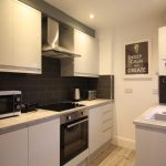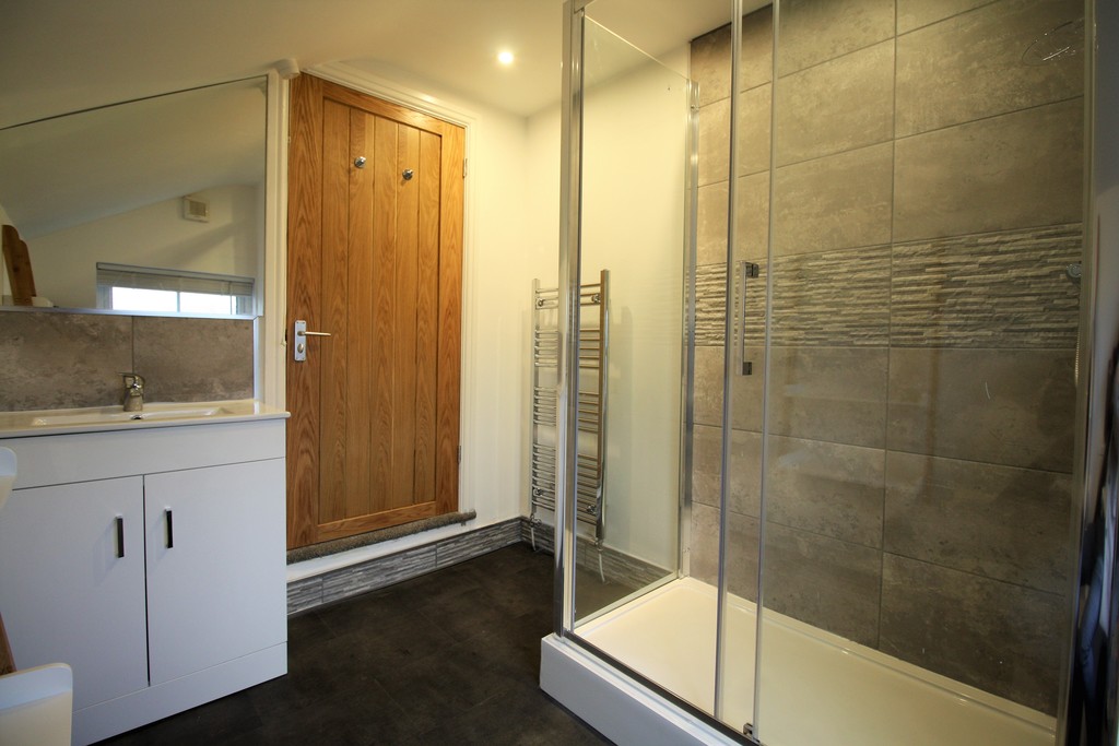 The front door opens onto an entrance hall with stylish new grey wood effect tiles with a large ground floor bedroom to the left. The hall leads to a good sized living room which has a fitted breakfast bar, a large comfy L-shaped sofa, and a 40 inch wall mounted flat screen TV. The living room opens out onto the kitchen which has been newly fitted out to a very high standard compromising of modern wall and base units with kitchen appliances, including a washer dryer, hob, oven and a large fridge freezer.