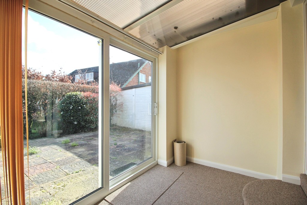 The home opens into a bright and spacious living area, creating a welcoming space for relaxing or entertaining. From here, the property flows through to a sun room, allowing plenty of natural light and offering views over the garden.
