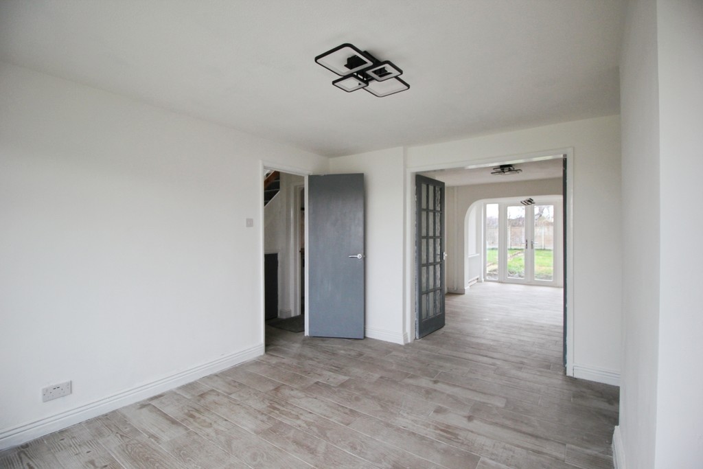 The ground floor comprises a welcoming entrance hall leading to a spacious front living room, perfect for relaxing evenings. To the rear is a separate dining room featuring French doors that open directly onto the garden, providing an excellent space for entertaining and indoor-outdoor living. Completing the ground floor is a large, newly fitted kitchen offering ample storage and worktop space.