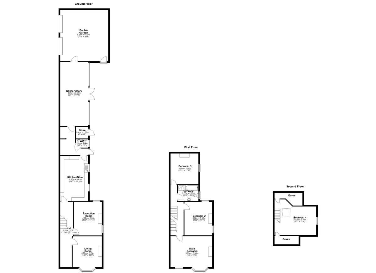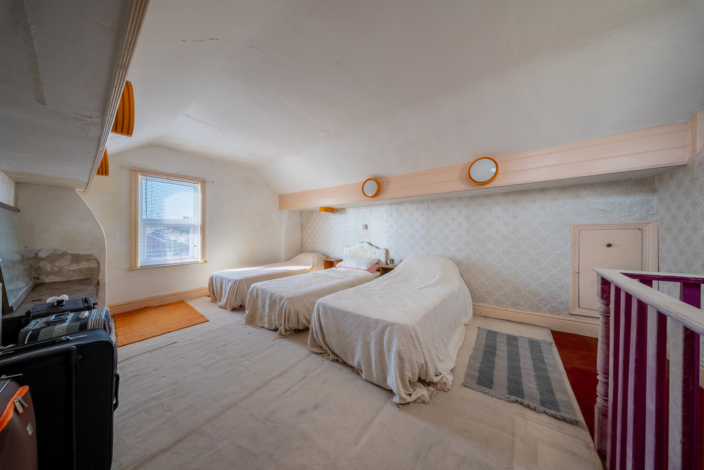Stairs continue to the second floor, where the fourth bedroom provides another large double room, with cupboards leading to boarded eaves storage, offering excellent additional storage.