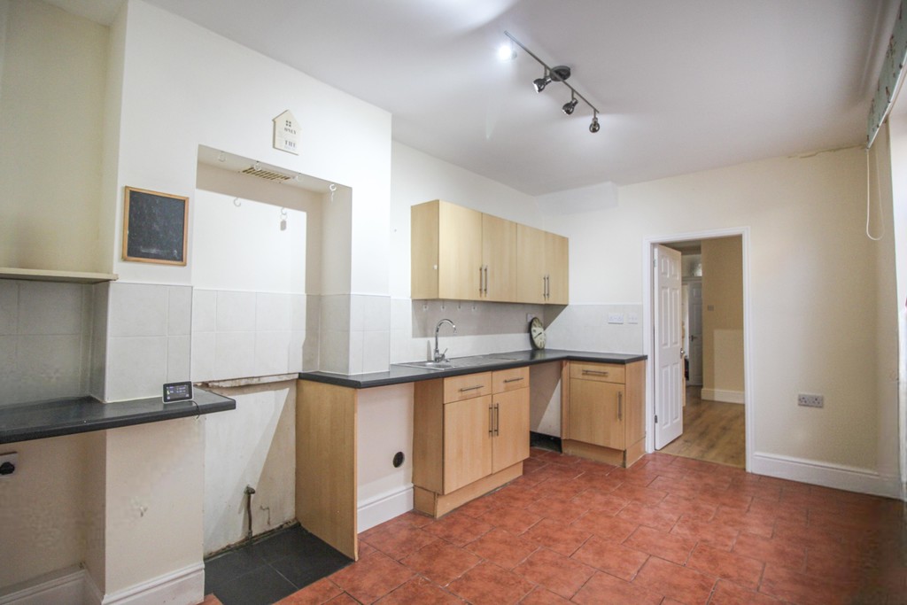 The kitchen offers ample storage and worktop space and includes room for a single cooker/hob, fridge/freezer and washing machine (white goods not included). A separate store room off the kitchen provides useful additional storage.