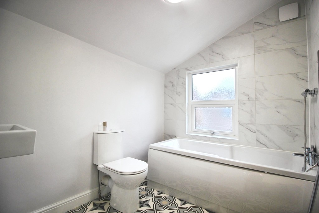 Upstairs, the first floor comprises two well-proportioned double bedrooms, both newly redecorated and laid with plush new carpets. Each room offers a comfortable and peaceful space, perfect for rest or home working. The stylish new bathroom features a modern three-piece suite, including a bath with shower over, wash basin, and WC, all finished in a clean, contemporary style with high-quality fittings.