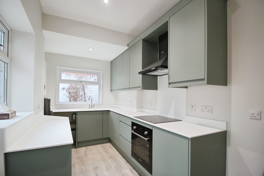 To the rear of the property is a beautifully fitted brand new kitchen, complete with contemporary units, worktops, white goods not included. The kitchen also houses a brand new boiler and provides direct access to the private outdoor patio area, ideal for enjoying a morning coffee or hosting an evening barbecue. The patio benefits from side access via a secure gate, offering additional convenience and practicality.