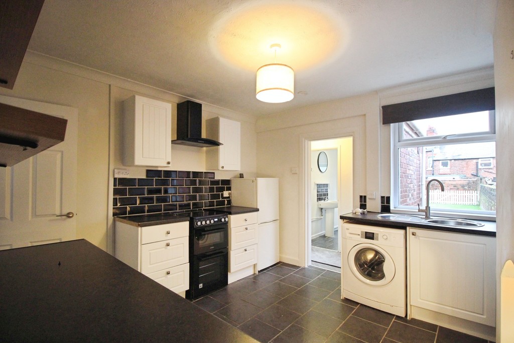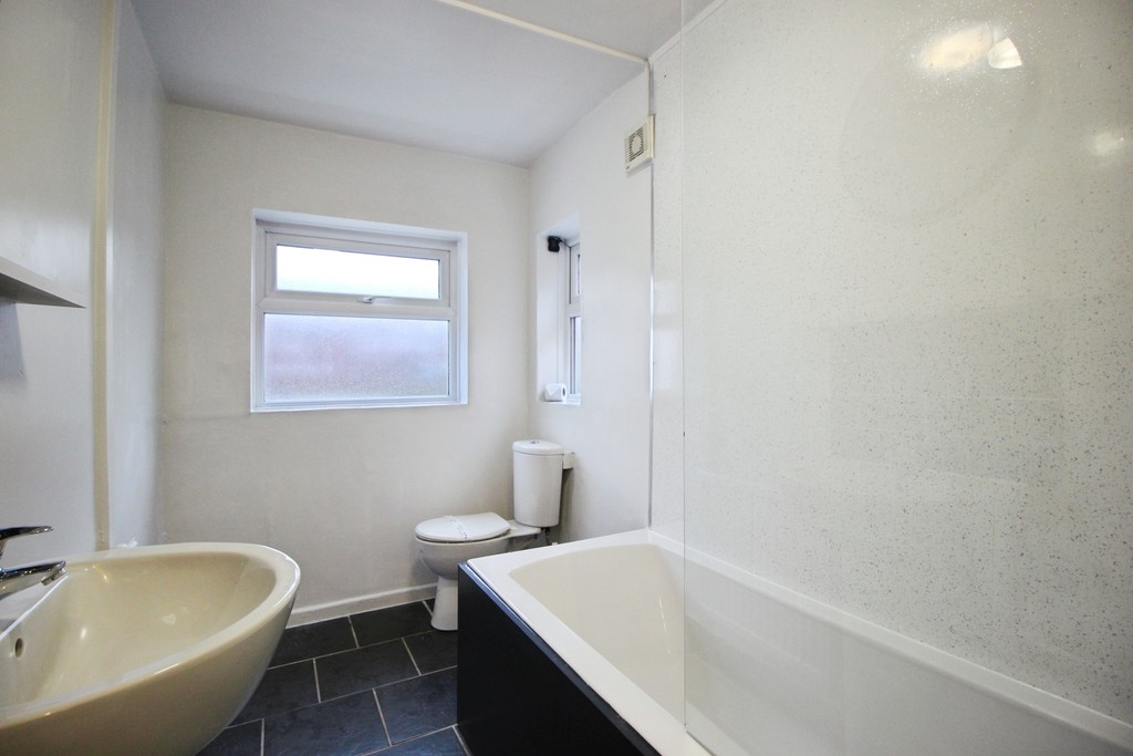 The property opens into a bright front reception room, perfect for relaxing or entertaining. To the rear is a large, modern kitchen equipped with ample storage, generous worktop space, and appliances including a cooker/hob and washing machine. The ground floor also features a contemporary bathroom fitted with a shower over bath, WC and washbasin.